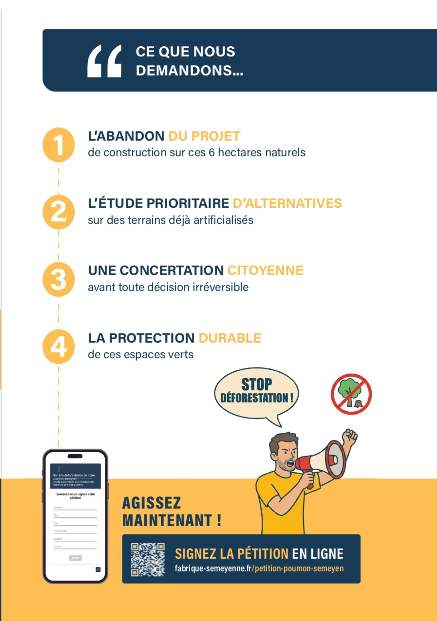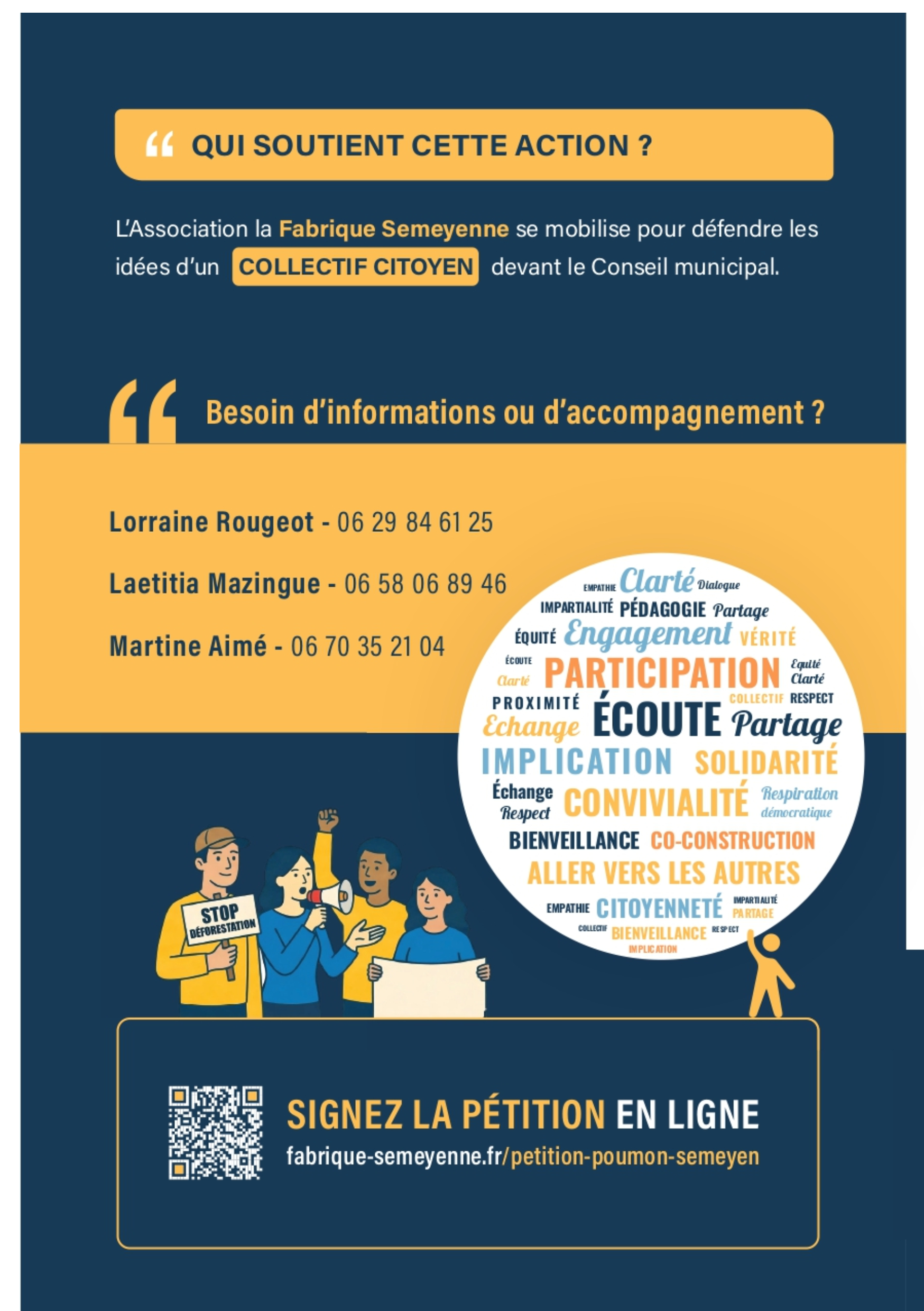 Face Ă cet enjeu environnemental majeur, un collectif citoyen est en cours de constitution, avec le soutien de La Fabrique Semeyenne, afin de sâopposer Ă cette urbanisation et de dĂ©fendre la prĂ©servation de ce patrimoine naturel.